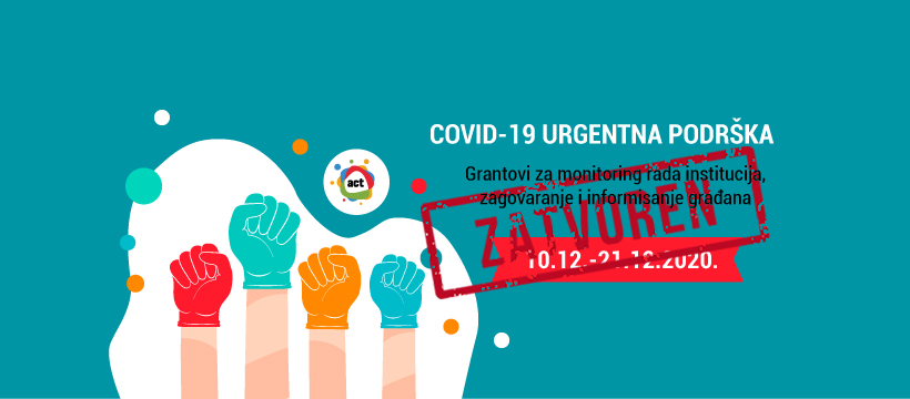NovostiNAJAVA: GRANTOVI ZA URGENTNU PODRŠKU ZA MONITORING RADA INSTITUCIJA, ZAGOVARANJE I INFORMISANJE GRAĐANA U VEZI SA PANDEMIJOM KOVID-1903. dec 2020