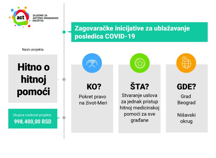 Pokret „Pravo na život – Meri“ i „Sigurne staze“ zajedničkim snagama izradili su kartu pokrivenosti službe Hitne pomoći, sa ciljem da ukažu na neophodnu reogranizaciju ove službe. Oba udruženja su korisnici ACT granta.