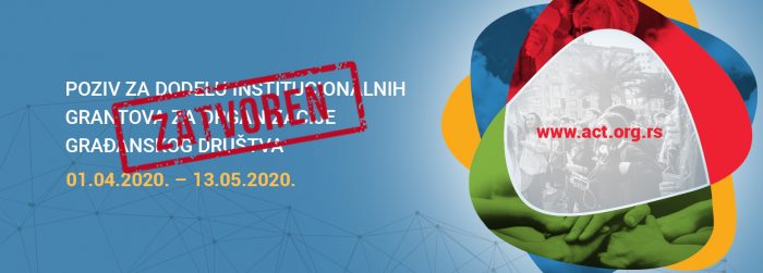 Beograd, 13. maj 2020. – Završen je Poziv za dodelu institucionalnih grantova u okviru projekta „Zajedno za aktivno građansko društvo – AST“ na koji se prijavilo 200 organizacija građanskog društva.