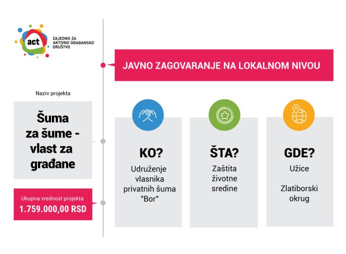 Udruženje vlasnika privatnih šuma Bor izdalo je saopštenje u kome informiše javnost o namenksim sredstvima za šume u Zlatiborskom okrugu. Portal Zlatr info prenosi saopštenje u celini.